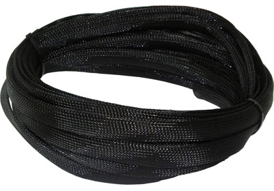 GUAINA TRECCIATA IN POLIESTERE NERO BOBINA 10 mt. DIAMETRO MIN 50mm - MAX 100mm.